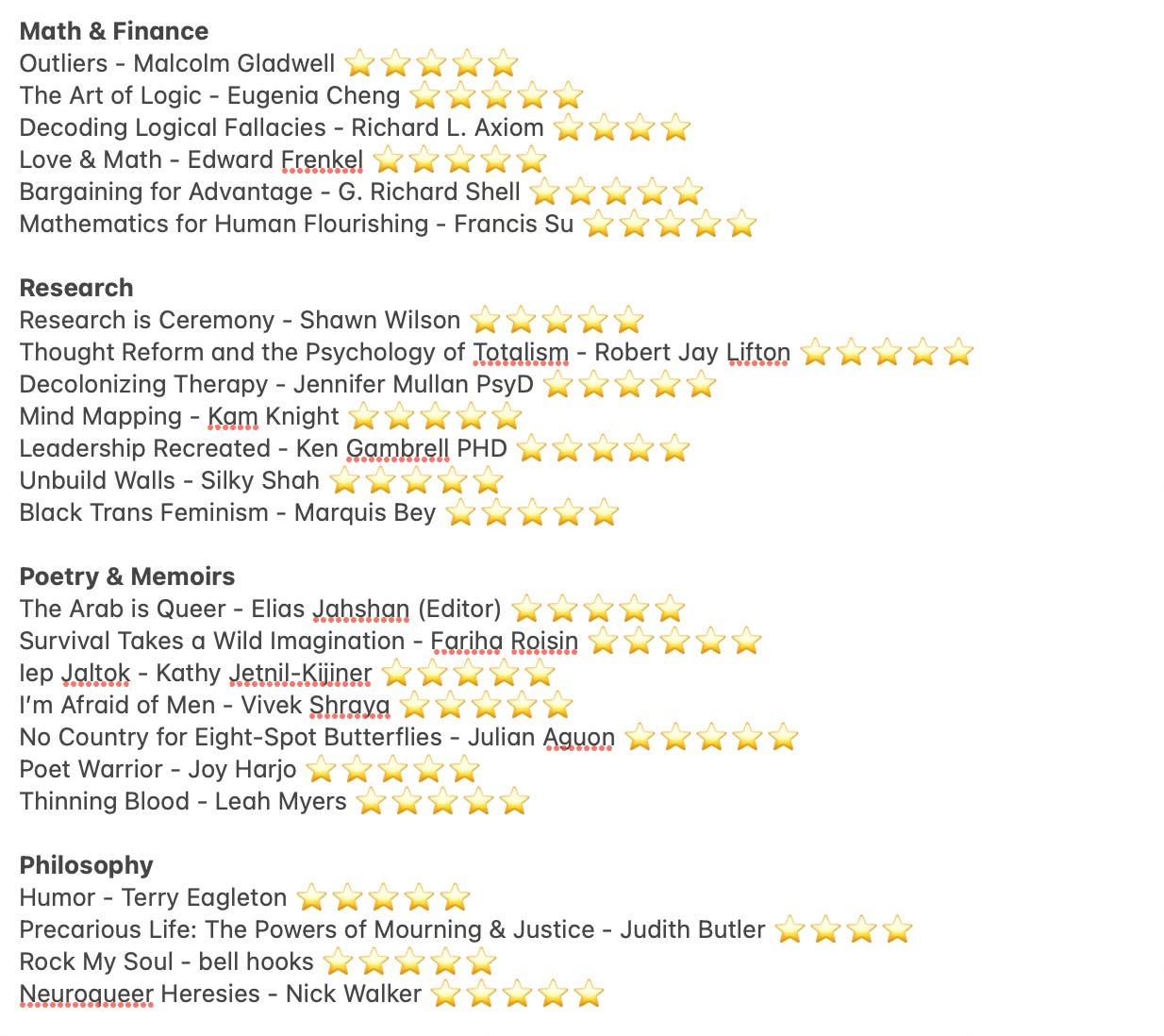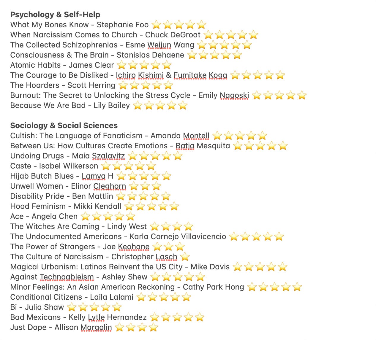Howdy my lovelies, here’s my official 2024 reading list, I believe the total is 67 with 63 being non-fiction and 4 being fiction!